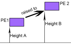 To lift an object that is on the ground to a height, A, against the gravitational force, we need to do work. The energy at that height is called potential energy. If we move this object from A to another height B, then there is a difference in potential energy from A to B.